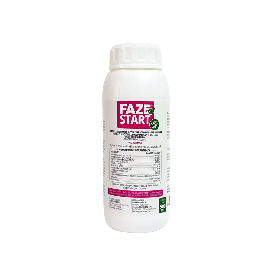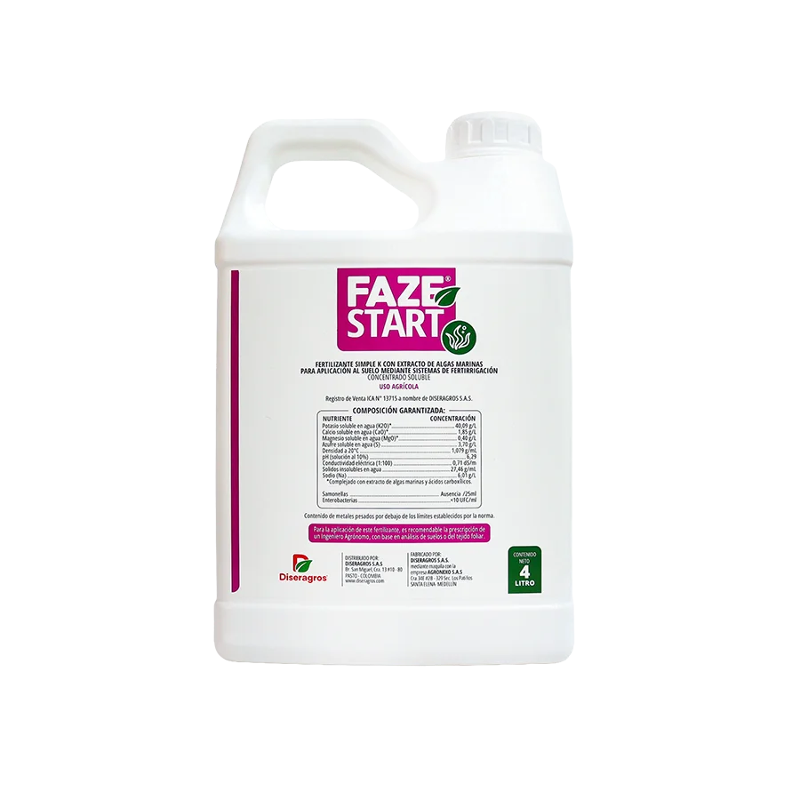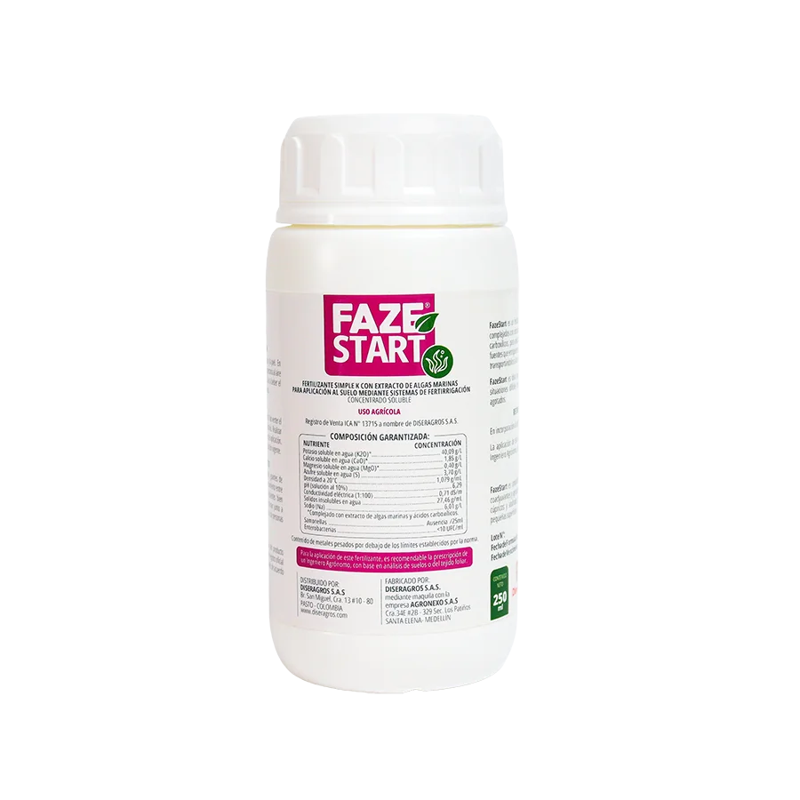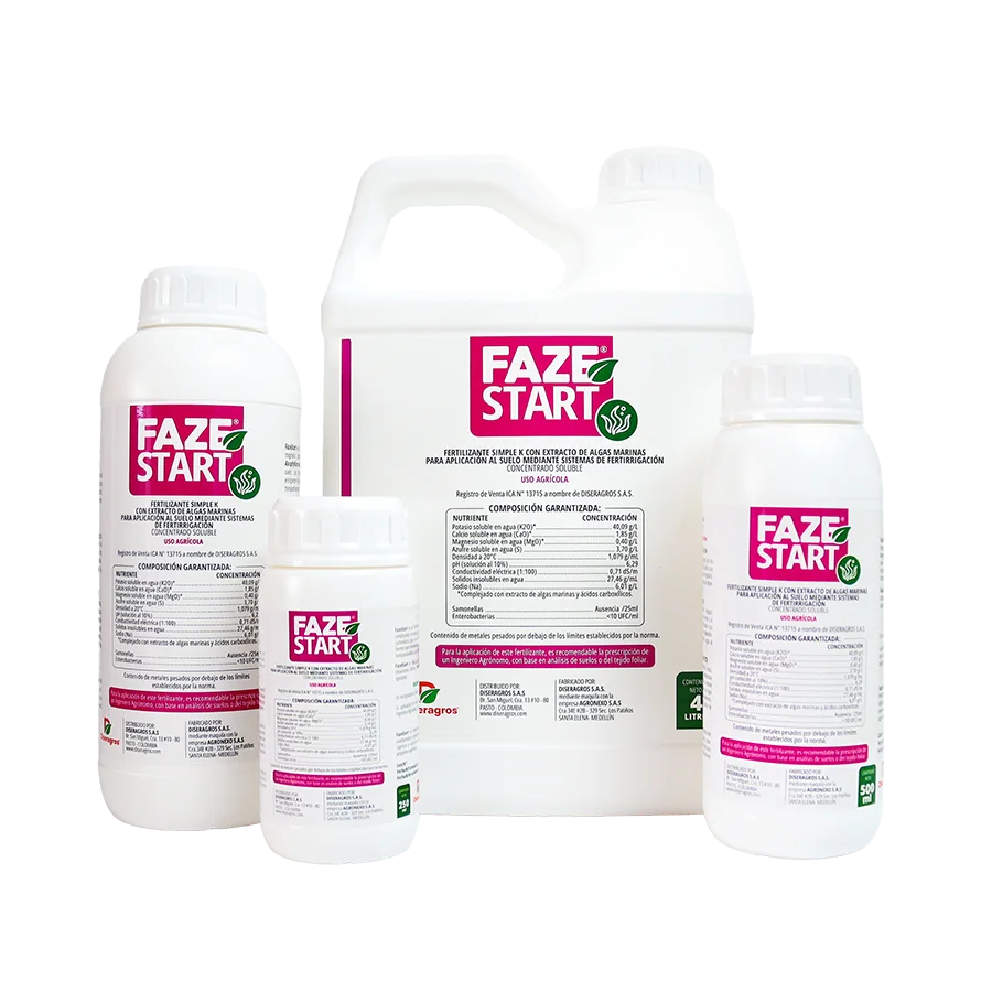 FazeStart – bioactivador metabólico-innovadora fórmula que estimula el desarrollo vegetativo, floración y cuajado de fruto, mejora la eficiencia fotosintética y aumenta la tolerancia al estrés, permitiendo a los agricultores alcanzar su máximo potencial de producción, para obtener cosechas más abundantes y rentables.